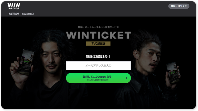 競輪。オートレスネット投票サービスの「WINTICKET(ウィンチケット)」は、かんたん1分登録するだけで、投票に使える1,000円分のポイントが必ずその場でもらえます。